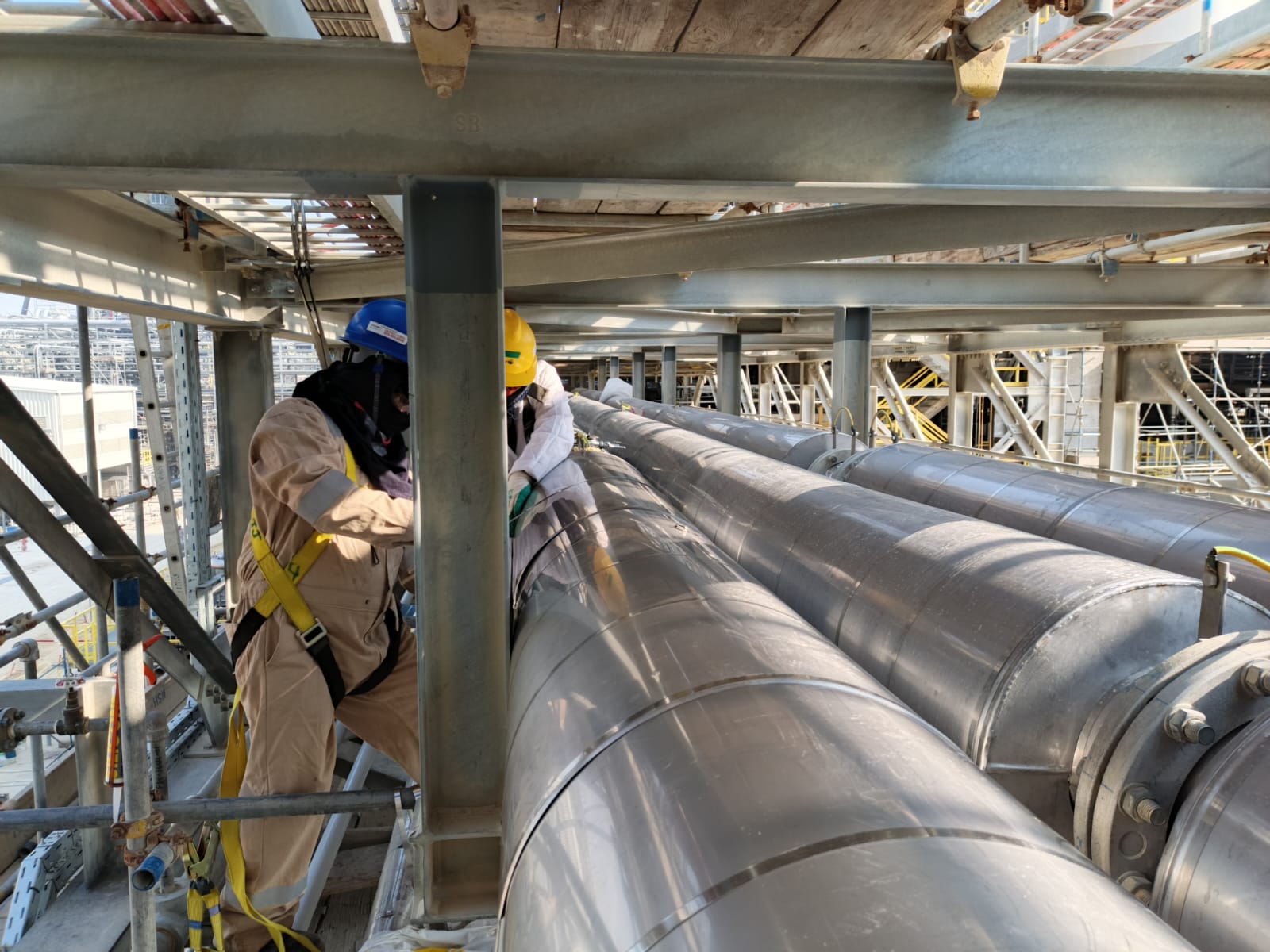 Hot Insulation : Columns, Vessels, Heat exchangers and equipment, pre-heaters, turbines, piping and fittings, exhaust gas installations and filters and incinerators. Thermal, Acoustic and Cryogenic insulations.